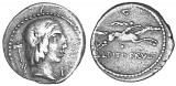 ROMAN REPUBLIC, L. Calpurnius Piso Frugi, (90 B.C.), silver denarius, Rome mint, (3.896 grams), obv. Apollo laureate head to right, XXX arrow to left, rev. ...