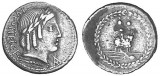 ROMAN REPUBLIC, Q. Caecilius Mettellus Pius Scipio, (Imperator 47-46 B.C.), silver denarius, Africa mint, (3.635 grams), obv. laureate head of Jupiter to right, [Q. ME]TEL ...