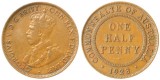 GEORGE V, 1914H. Blotchy red and brown uncirculated and rare in this condition.