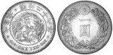JAPAN, Meiji era, silver fifty sen, year 4 (1871), 32mm diameter, (KM.4). Very fine. (2)