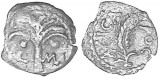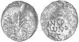 SAMARIA, Satrap issue, (375-345 B.C.), silver obol, (0.524 grams), obv. female head (Arethusa?), facing, border of dots, rev. bearded male head to left, with crested ...