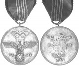 OLYMPIC GAMES 1936 MEDAL. Stamped 'L/16' and '800' on rim and '800' on suspension ring. Very fine.