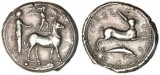 SICULO-PUNIC, 'Cape of Melkart', (c.330-305 B.C.), silver tetradrachm, (16.254 grams), obv. charioteer driving a quadriga of rearing horses to right, holding kentron in right hand, ...
