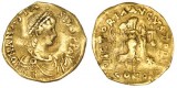 ANASTASIUS I, (A.D. 491-518), gold tremissis, Constantinople mint, (1.15 grams), obv. diademed bust of Anastasius I to right, around DN ANASTA SIVS PF AVG, rev. ...