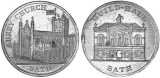 BATH, Kempson's buildings, halfpenny, Bath city token/(Coventry) Free School New Front (D&H unlisted) mule in white metal. Toned extremely fine.