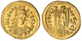 THEODOSIUS II, (A.D. 402-450), gold solidus, Thessalonica mint, issued A.D. c.408-430 (4.33 grams), obv. rosette and pearl diademed bust draped and cuirassed of Theodosius facing ...