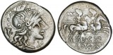 Q. MINUCIUS RUFUS, (c.122 B.C.), silver denarius (3.894 grams), obv. Roma helmeted head to right, X below chin, RVF behind, rev. Dioscuri to right, Q. ...