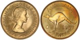 ELIZABETH II, Melbourne Mint proof penny, 1955. Full brilliant mint red FDC.