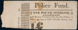 NEW SOUTH WALES COLONIAL POLICE FUND ONE POUND STERLING (1816) UNISSUED REMAINDER NOTE CUT HIGH ON BOTTOM CAUSING SLIGHT LOSS OF NOTE, wide left margin, ...