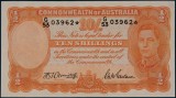 TEN SHILLINGS, Coombs/Watt (1949) A/1 58330* (R.14s). Light centrefold, flat and crisp, virtually uncirculated and very rare in this condition, one of the finest known.