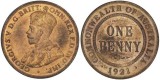 GEORGE V, 1921 Indian die. Full original mint red, some carbon toned areas, uncirculated and rare in this condition, one of the finest known.