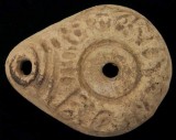 MIDDLE EASTERN ROMAN, 3rd century A.D., clay round bodied oil lamp, medallion decorated by a wreath, (length 77mm). Very fine.