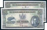 NEW ZEALAND, Reserve Bank, L. Lefeaux, 1934 - 40, five pounds, K 445723/4 (P.156). Consecutive pair. Toned uncirculated and rare as such. (2)