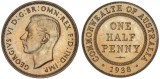 GEORGE VI, Melbourne Mint proof halfpenny, 1938. Brilliant full mint red, FDC and very rare in this condition, one of the finest known.