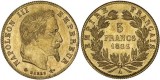 FRANCE, Napoleon III, gold five francs, 1866A (KM.803.1). Good extremely fine.