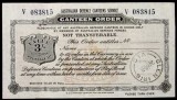 WORLD WAR II, Australian Defence Canteens Service, Canteen Order for two shillings, V212332, stamped 24 Nov 41, Glen Iris, Vic. Very fine.