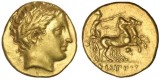 MACEDON, Kingdom of Philip II, (359-336 B.C.), gold stater, (8.570 grams), Pella mint, issued period III, 323/2-315 B.C., obv. head of Apollo to right with ...