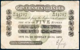 GOVERNMENT OF INDIA, five rupees, Bombay, 29 Feb 1872, Signature E. Gay, M/10 34707 (P.A2; Jhun.1.1D). Fine and a rare early date.