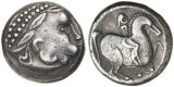 CELTIC, Danubian celt Kapostal type silver drachm, (2.60 gm), (c.1st Century B.C.), obv. Head of Zeus to right, rev. rider to left, above a crest ...