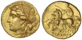 SICILY, Syracuse, Hieron II, (275-215 B.C.), gold drachm or hundred litrai (4.25 gm), struck circa 275-263 B.C., obv. head of Persephone left with long flowing ...