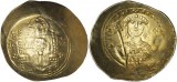 MICHAEL VII, (A.D.1071-1078), electrum gold histamenon nomisma (scyphate), Constantinople mint, (4.29 gm), obv. bearded Christ enthroned facing, wearing nimbus, raising right hand, in left hand ...