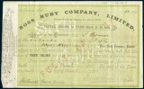 SOUTH AUSTRALIA SUNDRY, Australian Ruby Company, 188[8], one hundred £1 shares, black on yellow ,scrollwork left side; Ross Ruby Company, 18[88], fifty £1 shares, black ...