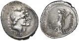 Q. FUFIUS CALENUS AND MUCIUS CORDUS, (c.70 B.C.), silver denarius, Rome mint, (3.59 g), obv. jugate heads of Honos and Virtus to right, [KALENI] below, ...
