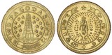 INDIA, EIC, Madras Presidency, European Style Coinages Issues, 1808-1815, gold two pagodas, (5.952 grams), obverse, Gopuram of a temple with 9 stars each side, around ...