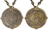 RUSSIA/POLAND, 1864 Judges Badge, brass round (44mm) with chain and bar support with pin, obv. crowned monogram of Alexander II and date 1864, rev. Imperial ...