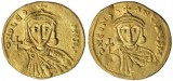 CONSTANS II, with Constantine IV, (641-668 A.D.), gold solidus (4.33 g), Constantinople mint, 6th officina, struck 654-658, obv. crowned busts of Constans, wearing long beard, ...