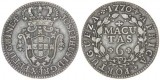 ANGOLA, Portuguese Africa, Joseph I, silver twelve macutas, 1770 (17.49g) (KM.18). Grey tone, nearly extremely fine and rare in this condition.