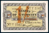 GUERNSEY, States of Guernsey, German Occupation - WWII, one shilling over one shilling and threepence, 1st January 1943, No. T 2342, black on yellow and ...