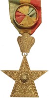 ETHIOPIA, Order of the Star of Ethiopia, 2nd Class, on ribbon bow, gilt silver filigree with red stone centerpiece. One lower ray slightly loose at ...