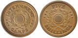 POST WORLD WAR I, Kreuzer Emden, one hundred pfenning canteen token in nickel plated white metal; World War II, Washington Fanning Islands, good for check, ...