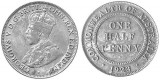 GEORGE V, 1928. Red and brown, uncirculated and rare in this condition, one of the finest known.