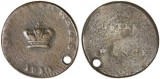 NEW SOUTH WALES, fifteen pence or dump, 1813 (Mira dies D/2) struck (?) in copper (3.63g). Holed at 4 o'clock, slightly concave, rim partly curled ...