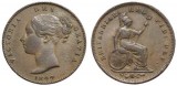 QUEEN VICTORIA, young head, farthing, 1853/2 (overdate?), A's in BRITANNIAR unbarred (S.3950). Tone spots on obverse, otherwise nearly extremely fine.