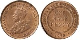 GEORGE V, 1929. Red brown mint bloom, choice uncirculated, one of the finest known.