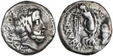 L. PAPIUS, (c.79 B.C.), silver denarius, Rome mint, (3.62 g), obv. Juno Sospita head to right, wearing goat's skin, headdress of Isis behind (143), rev. ...