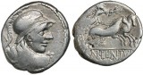 CN. LENTULUS CLODIANUS, (88 B.C.), silver denarius, Rome mint, (3.79 g), obv. Mars helmeted bust right, seen from behind, rev. Victory in biga to right, ...