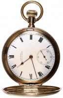 GENT'S HUNTER POCKET WATCH, c1909, American Waltham Watch Company, rolled gold engine turned case (50mm) No. 8967571, top wind, white enamel dial with subsidiary seconds ...