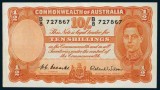 TEN SHILLINGS, Coombs/Watt (1949) A/64 845064 (R.14). Front left margin with old gum mark, nearly very fine.