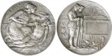 WWI MEMORIAL, Lest We Forget, undated (c1919), in oxidised silvered bronze (44mm) (BHM 4150), unnamed; Peace medal, undated (1919 scratched on reverse), in white metal ...