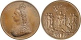 INTERNATIONAL EXHIBITION OF NAVIGATION, Travelling, Commerce and Manufactures, Liverpool, 1886, in bronze (51mm) by Elkington, obverse, crowned bust of Queen Victoria left; reverse, female figure, ...