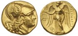 MACEDON, Kingdom of, Alexander III, (336-323 B.C.), gold distater, (17.09 g), Aegeae mint (?), issued 336-323 B.C., obv. head of Athena to right in crested ...