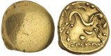 ANCIENT BRITISH, Regini and Atrebates, (c.55-45 B.C.), gold stater, (5.78 g), Selsey Uniface type, obv. plain, rev. triple-tailed horse to right, charioteer's arms above, oval ...