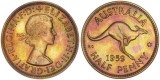 ELIZABETH II, Melbourne Mint proof halfpenny, 1959. Toned, FDC.