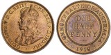 GEORGE V, 1915H. Red and brown, uncirculated and rare in this condition, one of the finest known.