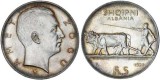 ALBANIA, Kingdom, Zog I, one and two qindar ari, 1935 (KM.14, 15), quarter, half, and one lek, 1927, 1926 (KM.3, 4, 5), half lek, 1930 ...