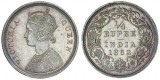 QUEEN VICTORIA AS QUEEN, silver rupee, 1875, bust C, 0/1 (illustrated); as Empress, silver rupees, 1884B (raised), reverse II, another 1884B (raised), (KM.492). One very ...